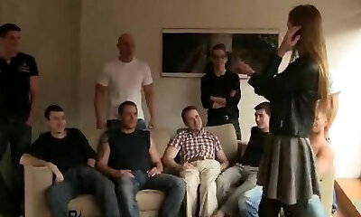 hot brunette rigid anal gangbang and bukkake by many cocks