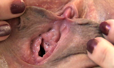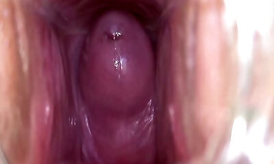 Slow fucking wife's pussy and peeing inwards. Close-up