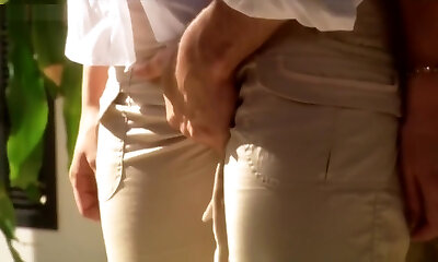 A dark haired with a big caboose gets real pleasure from a big dick in a hot threesome.
