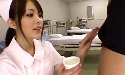 Good looking Japanese nurse and one horny guy have mischievous sex