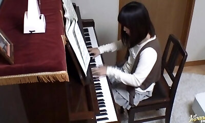 Piano teacher rear pulverizes his pupil across the piano keys