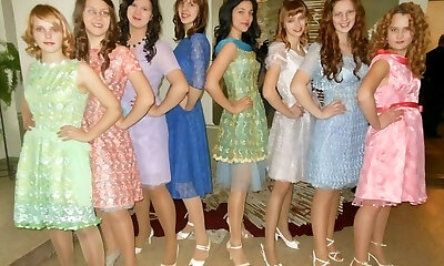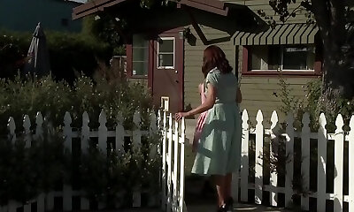 Mesmerizing brunette milf in black dress seduced by ginger-haired milf