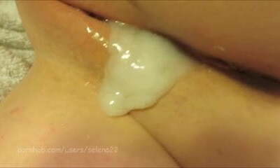 hotwife wichst ab, während sie sieht, wie die frau mit dem großen hintern creampied wird, während er abspritzt!