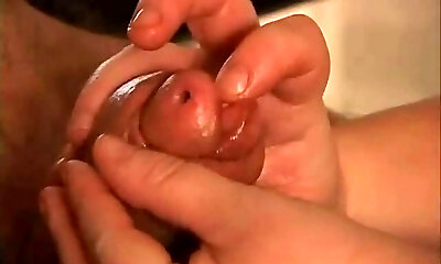 HOT WAX Handjob - Fat Pierced Spunk-pump - Prince Albert - Jism out of Piercing!